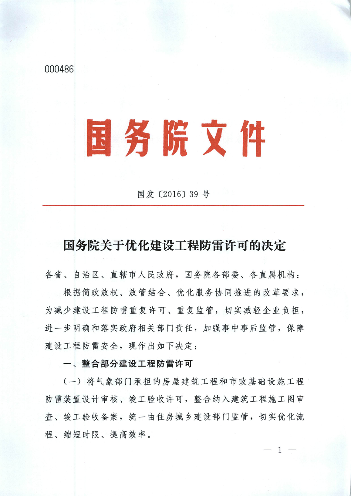 中国气象局等11部委关于贯彻落实《国务院关于优化建设工程防雷许可的决定》的通知