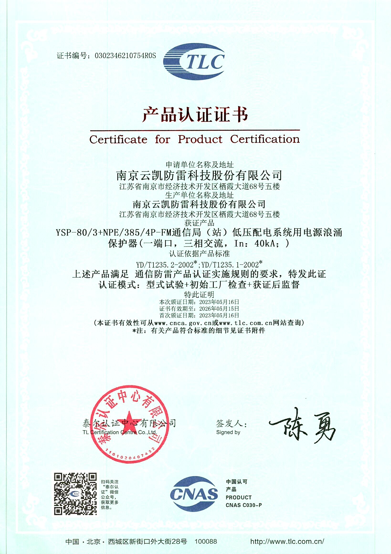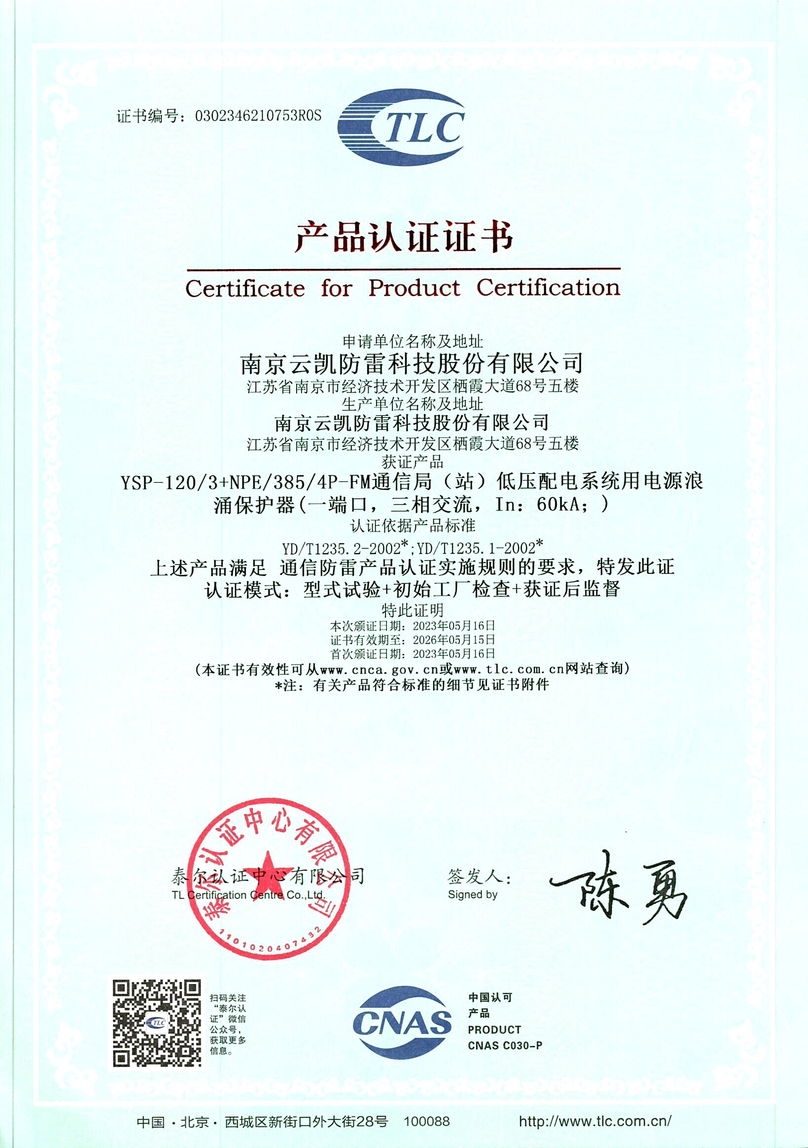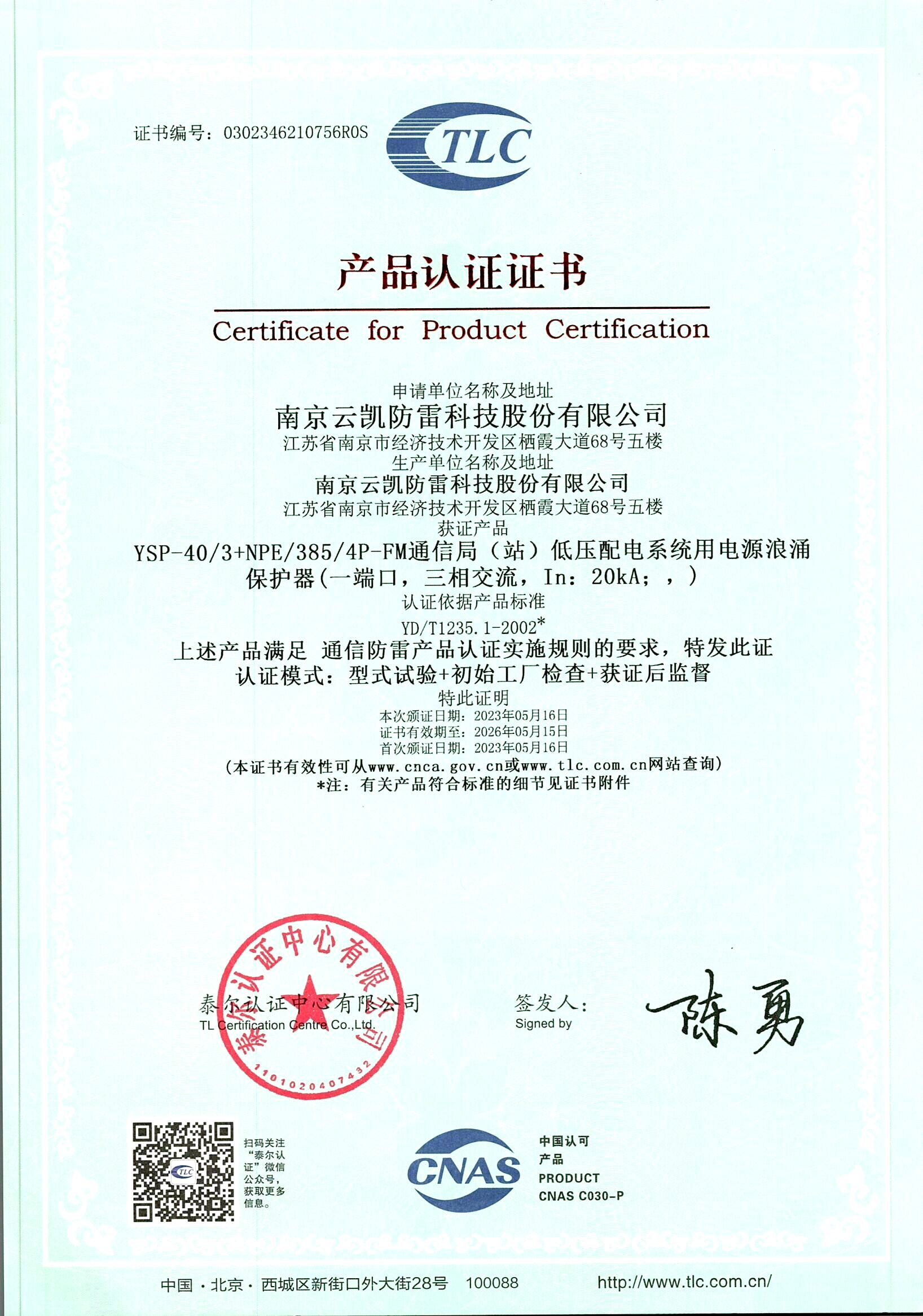 欢迎来到南京云凯防雷科技股份有限公司官方网站!